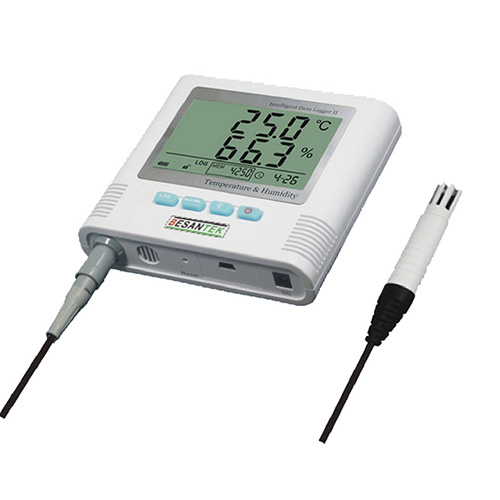 The BESANTEK BST-DL107 Temperature and Humidity Data Logger with External Probe can be widely applied to laboratory settings, medical applications, the food and pharmaceutical industries, industrial applications, environmental protection areas, and agricultural research fields. The logger features an adaptive and highly sensitive sensor with fast response and high accuracy. It is easy to operate and can be placed on desk or mounted on a wall. The large screen simultaneously displays temperature, the number of data groups stored, and the time. The logger can record up to 43,000 readings, which can be printed in real-time when the logger is connected to a printer.