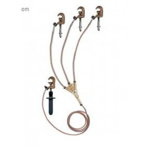 The short circuiting system comes as standad with 3 earthing clamps on one end and another clamp at the other/ 3 copper flexible insulated cables make up the system.