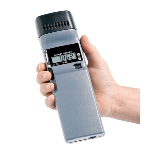 The PK2X portable, digital stroboscope delivers superior performance and incorporates impressive new features, while remaining among the world's smallest industrial stroboscopes. Performance enhancing features include a flash brightness of 800 Lux (300% brighter than PK1), a flash rate of up to 12,500 flashes per minute and a longer-lasting flash tube. The PK2X has a Lithium Ion battery that provides a full 2 hours of continuous operating time regardless of flash rate.