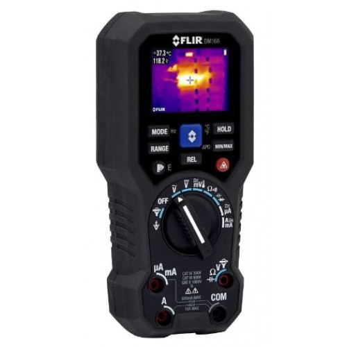 The FLIR DM166 is the most affordable multimeter with built-in thermal imaging - a must-have tool for commercial electricians, automation, electronics, and HVAC technicians. Featuring Infrared Guided Measurement (IGM™) powered by an 80 x 60 FLIR thermal imager, the DM166 visually guides you to the precise location of temperature anomalies and potential problems faster, more safely, and efficiently. The feature-packed multimeter is an ideal tool for troubleshooting and diagnosing complex issues in both high-voltage and low-voltage applications.