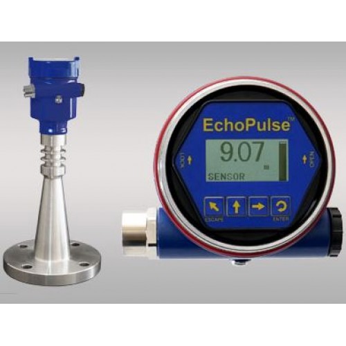 The Flowline LR20 EchoPulse LR20 Pulse Radar Level Transmitter provides continuous liquid level measurement up to 98.4ft (30m) with a 4-20 mA signal output, and is configured via its integral push button display module. The non-contact liquid level sensor is intended for chemical storage or process applications in above or below grade tanks of any material. Select this sensor for challenging application conditions with corrosive media, light surface foam or agitation, higher temperature or pressure, condensation or vapor, and installation in a flange fitting. Offered in two antenna sizes, select the appropriate size based upon the desired beam angle, available mounting port size and process condition. The longer the antenna, the narrower the beam width and stronger the RF signal output for more challenging processes.