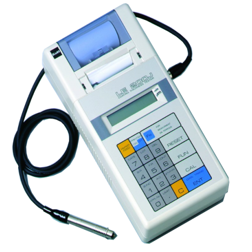 The LE-200J is a portable coating thickness tester with a built-in printer. This unit can accurately and quickly measures many items such as magnetic plating (electrolyzed nickel plating not included), coating, painting, and lining without injuring or damaging the item. Furthermore, you can print out the measurement results on-site with the internal printer