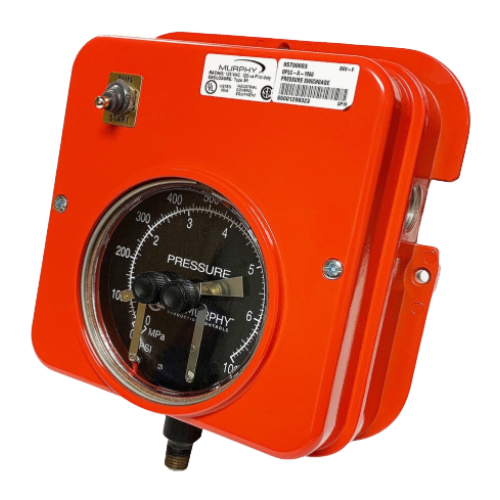 The Murphy Mechanical 0-1000 PSI Surface Mount Pressure Swichgage with Low Limit Lockout Switch OPLC-S-1000 is a combination pressure indicating gage with adjustable low and high limit switch. This limit switch can be wired directly to electric pilot circuits to operate alarms, shutdown or start/stop of engines and electric motors. The OPLC-S-1000 features a 4-1/2 in. (114 mm) dial for easy viewing. Adjustable limit switch is accessible from the front of the gage and the contacts have a self-cleaning motion to enhance electrical continuity.