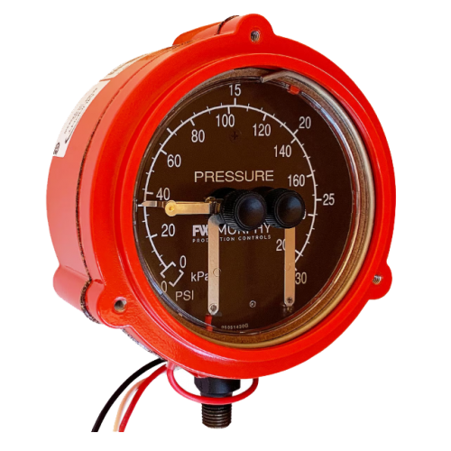 OPLFC-A-30: 4.5" Pressure Swichgage®; panel mounting; Brass bourbon tube 0-30 psi. (05701048)