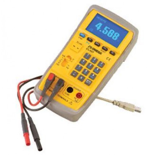 A highly accurate and powerful system for testing, measuring and calibrating built into a single compact portable instrument. The OMEGA™ CL427 indicator/simulator is a multifunction instrument designed to meet, in a modern and practical way, the needs of instrumentation engineers, both in laboratory and field work. Accurate, compact, rugged and easy to use, it is the ideal solution for measuring and simulating: millivolts, volts, milliamperes, frequency, sine, square and triangular waveforms, and thermocouples. The CL427 has been developed using the most advanced microprocessor technology to provide high accuracy on extended ranges and a powerful operating flexibility. A unique internal automatic RJ compensation system allows the CL427 to provide accurate input and output readings in operating conditions with a temperature range of 0 to 50°C (32 to 122°F). Further, external compensation is available that allows users to fine tune temperature output and measurement. The model CL427 has been designed for use in industrial environments such as factory floors, process plants, service departments and maintenance workshops. Millivolts, Volts, milliamps, and frequency can be measured or generated. Both accuracy performance and stability allow you to calibrate field and control room instrumentation. Square wave pulses can be generated with frequencies from 0.3 Hz to 20 kHz. Pulse height is adjustable between 100 mV and 20 Volts. With this powerful function, the user can even test electro mechanical devices such as counters and relays. Simulating non-linearized temperature transmitters (Tx) allows the user to check and calibrate 4 to 20 mA system input hardware and software quickly and easily. User can set or manipulate temperatures in °C or °F related to any available sensor and send the appropriate milliamps to the system input. Milliamps can be monitored simultaneously on calibrator display.