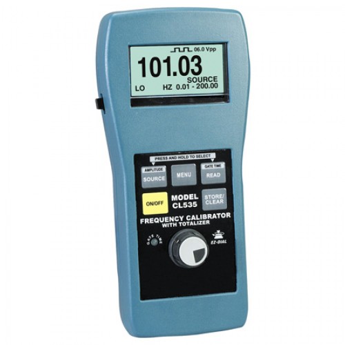 The Omega CL535 is an excellent tool for calibration, test, and diagnostics of instruments that use frequency signals. Instruments include tachometers, frequency counters, integrators, and any other frequency devices in the shop, plant and/or field. The CL535 brings all the features you would expect from a frequency calibrator and timesaving new ones with the easy dial knob and easy check switch saving hours of troubleshooting time. The CL535 comes with an LED indicator showing gate time for easy trigger level adjustment. When calibrating a totalizer, the CL535 eliminates the need of a stop watch. The calibrator will automatically stop when the selected number of pulses has been sent to the totalizer.