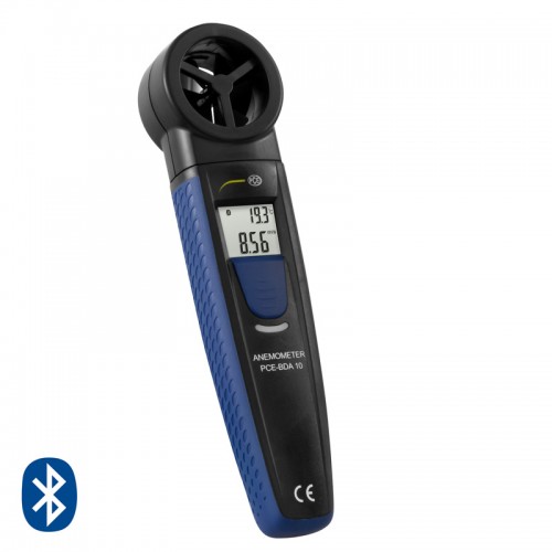The Bluetooth Anemometer PCE-BDA 10 is an optimal measuring device for heating and plant technicians. The Bluetooth Anemometer is an easy-to-use impeller anemometer. The measuring range extends from 1 to 25 m / s. The vane anemometer displays the measured air flow in 5 different units. Furthermore, the temperature of the wind is measured by the Bluetooth anemometer.