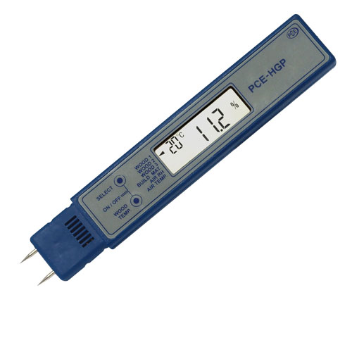 PCE-HGP is a multifunction wood moisture meter that uses penetrating pins to measure the moisture content of wood and other construction or building materials. PCE-HGP also measures the relative humidity (RH) and ambient temperature and calculates the dew point temperature of the air.