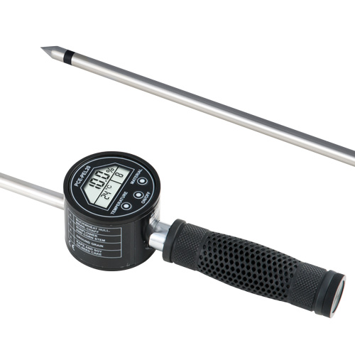 The wood moisture tester PCE-PEL 20 was designed in collaboration with biomass power plant operators. Since the heating value of pellets depends strongly on its moisture the wood moisture tester ensures high efficiency. The pellets moisture tester performs a resistance moisture detection. This means that the wood moisture meter measures the resistance of the test sample in order to gain information about its moisture due to its characteristic curve. Therefore it is of great importance to select the appropriate characteristic curve and temperature of the wood moisture meter. The wood moisture tester is applicable for comparative measurements of pellets that are made of either sawdust, wood chips, straw, hay, scraps of pellets, shells of sunflowers, buckwheat, corn, soy, etc. Therefore, simply plunge the 1000 mm long sensor into the pile of pellets and the measuring data will be collected after its stabilization. The wood moisture tester only measures at the tip of its sensor-probe. It is advised to perform several measurements at different points in order to achieve an adequate overview of the water content of the pile. Thus the wood moisture tester PCE-PEL 20 helps providing quick, easy and low-cost information about pellets moisture.