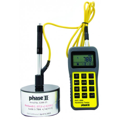 The Phase II PHT1850 Portable Hardness Tester with G Impact Device is a state-of-the-art, digital portable hardness tester designed to test the hardness of cast and large hard metal parts with rough surfaces. Loaded with useful functions, the Phase II PHT-1850 portable hardness tester is clearly setting a new industry standard by being the most accurate, economically priced portable hardness tester on the market today. Fast test speeds coupled with memory and output, the Phase II PHT-1850 is a hand's down winner, whether you are out in the field or in the QC shop.