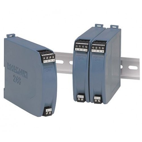 The Rosemount 248R Temperature Transmitter is designed to meet common Single Point measurement application requirements. This transmitter with HART protocol can easily be ordered with a variety of sensors (RTDs and thermocouples) and thermowells. The Rosemount 248R is provided in a rail mount configuration.. A PC-programmable interface is available, providing an easy-to-use configuration method from any PC.