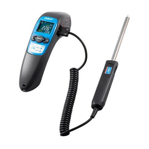 SKF TKTL20 Infrared and Contact Thermometer: The SKF TKTL 40 is a portable, lightweight, multi- functional instrument for measuring temperatures at a safe distance. Simply aim and pull the trigger and the temperature is shown on the display. Users can also measure contact temperatures using the probe supplied. This feature rich instrument also can take pictures and videos which show the temperature measurements. In addition, a number of environmental properties can also be measured and displayed.